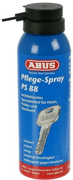 Das PS 88 von ABUS ist ein universell einsetzbares Pflegespray, welches nicht nur im Fahrradbereich vielseitige Anwendung findet. Ob vereiste Schließzylinder, rostende Schrauben oder quietschende Teile – das PS 88 ist die nichtfettende Lösung für fast alles.