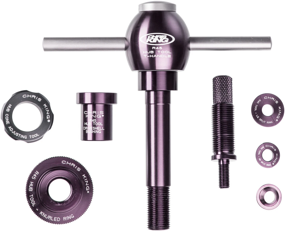 Mit dem Nabenwerkzeugkit R45 lässt sich die Chris King Road R45 Nabe in ihre Einzelteile zerlegen und wieder komplett montieren. Für den Profi, der die Wartung der Naben selbst übernehmen möchte.