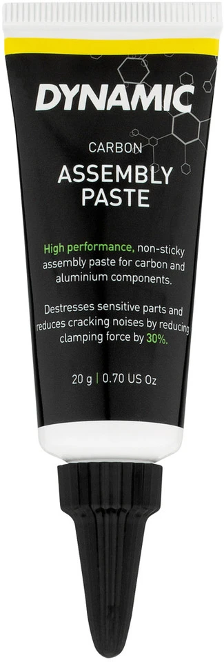 Die Montagepaste mit Micropearls von Dynamic verhindert das unerwünschte Verschieben von montierten Komponenten aus Carbon oder Aluminium. Außerdem kann dadurch das maximale Drehmoment um bis zu 30 % verringert werden. Dadurch werden besonders hochwertige Bauteile vor Beschädigungen durch zu festes Anziehen bewahrt.