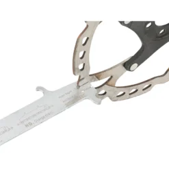 Als zusätzliches Feature hat die Verschleißlehre zwei Grenzmaße für Bremsscheiben der Marken Hayes, Magura bzw. Avid oder Shimano: Sobald die Bremsscheibe in die entsprechende Nut passt, wird es Zeit, die Bremsscheibe zu wechseln, um weiter sicher verzögern zu können.