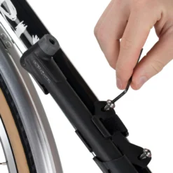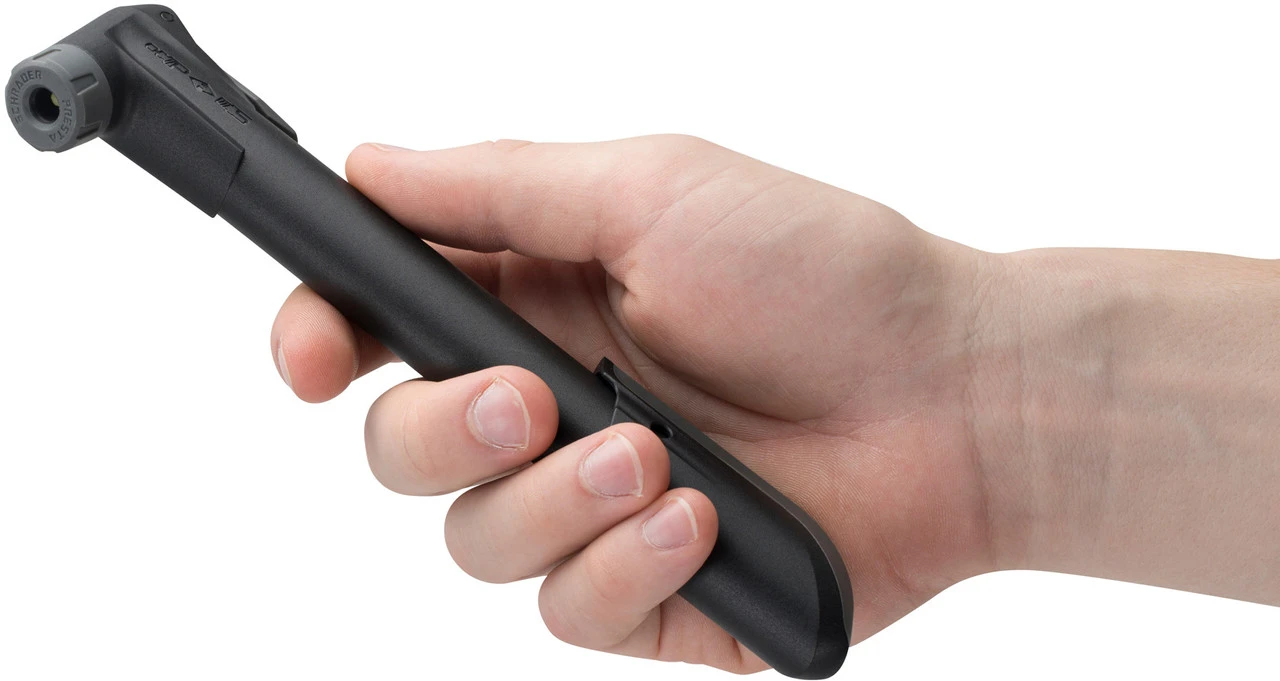 Die 3min19sec Minipumpe ist ein kompakter, praktischer Begleiter für Deine Touren. Der smarte Pumpenkopf lässt sich sowohl mit Schrader- als auch mit Presta-Ventilen verwenden. Ein robuster Hebel aus Kunststoff sorgt für die nötige Stabilität im Einsatz, wobei maximal ein Druck von 8,3 bar erzeugt werden kann. Und die praktische Halterung ermöglicht es Dir, die Pumpe neben Deinem Flaschenhalter zu befestigen, sodass Du dafür keinen Rucksack brauchst.
