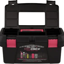 Mit dem E-Bike Ultimate Kit Reinigungsset von Muc-Off säuberst Du Dein E-Bike umfassend. Es enthält diverse Reinigungs- und Schmiermittel, Bürsten und ein Mikrofasertuch. Damit alles immer bestens verstaut und bei Bedarf griffbereit ist, erhältst Du alles im praktischen Aufbewahrungskoffer.