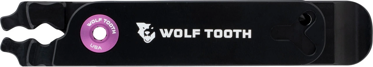 Die Wolf Tooth Components Pack Pliers Master Link Kombizange ist ein Multitalent, das Funktionen aufweist, wie man sie an einem Multitool vergeblich sucht. So kann man mit ihr Reifen abziehen, Ventilkerne entfernen, Ventilverschlussmuttern festziehen und natürlich Kettenverschlussglieder öffnen. Sie bietet auch Stauraum für zwei Kettenschlösser (nicht im Lieferumfang), welche durch Magnete festgehalten werden, die zugleich die Zange schließen. Außerdem ist die Pack Pliers so leicht und kompakt, dass Du sie problemlos mit Dir führen kannst.