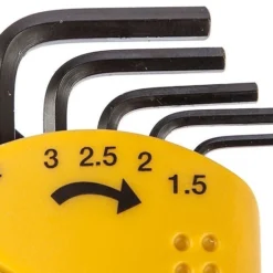 Technische Daten:Material:Chrom-Vanadium-StahlGrößen:1,5 / 2 / 2,5 / 3 / 4 / 5 / 6 / 8 und 10 mmFunktionen:9Funktionen:Innensechskantl:1,5 / 2 / 2,5 / 3 / 4 / 5 / 6 / 8 / 10 mmFeatures:Winkelschlüsselsatz für Innensechskantschrauben (HX)mit Sechskant-Kugelkopf am langen Schenkelwerden in praktischem Klapphalter aufbewahrt (Größen 1,5 bis 4 lassen sich zur leichteren Entnahme seitlich wegklappen)9-teiligHerstellernummer:23946