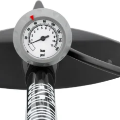Spezifikationen:Druck (max.):11 bar (160 psi)Pumpenkopf:Presta, Schrader und DunlopTechnische Daten:Maße:62 x 24 x 15 cm (H x B x T)Manometer:analogGriff:T-Griff mit GummieinlagenSchlauch:95 cmMaterial Zylinder:StahlMaterial Standfuß:KunststoffLieferumfang:1 x Standpumpe 3min19sec