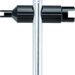 Ventilwerkzeug zum Lösen und Festziehen von Schrader-/Auto- und Sclaverand-/Presta-VentileinsÀtzen und -verlÀngerungen.