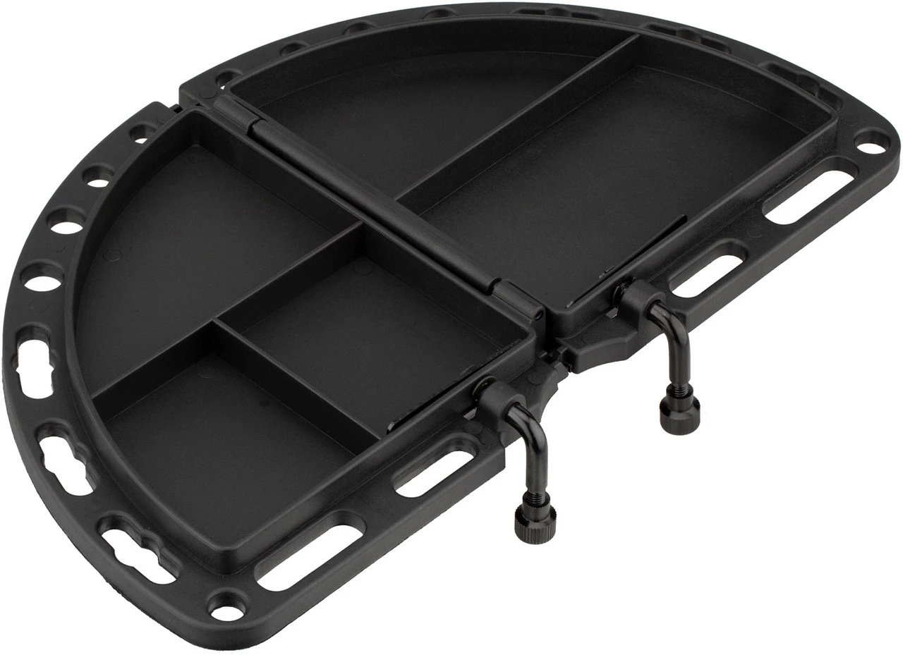Die Werkzeugablage von 3min19sec ist ein sehr sinnvolles Zubehörteil für unseren Montageständer. Damit hast Du Dein Werkzeug immer griffbereit. Die Ablage verfügt über kleine Fächer, in denen sich Werkzeuge oder auch Kleinteile wie Schrauben sauber sortiert organisieren lassen. Und falls Du sie nicht mehr benötigst, kannst Du sie einfach zusammenfalten und schnell verstauen. Dieser praktische Helfer besteht aus Kunststoff und wird an der dafür vorgesehenen Aufnahme am Montageständer befestigt.