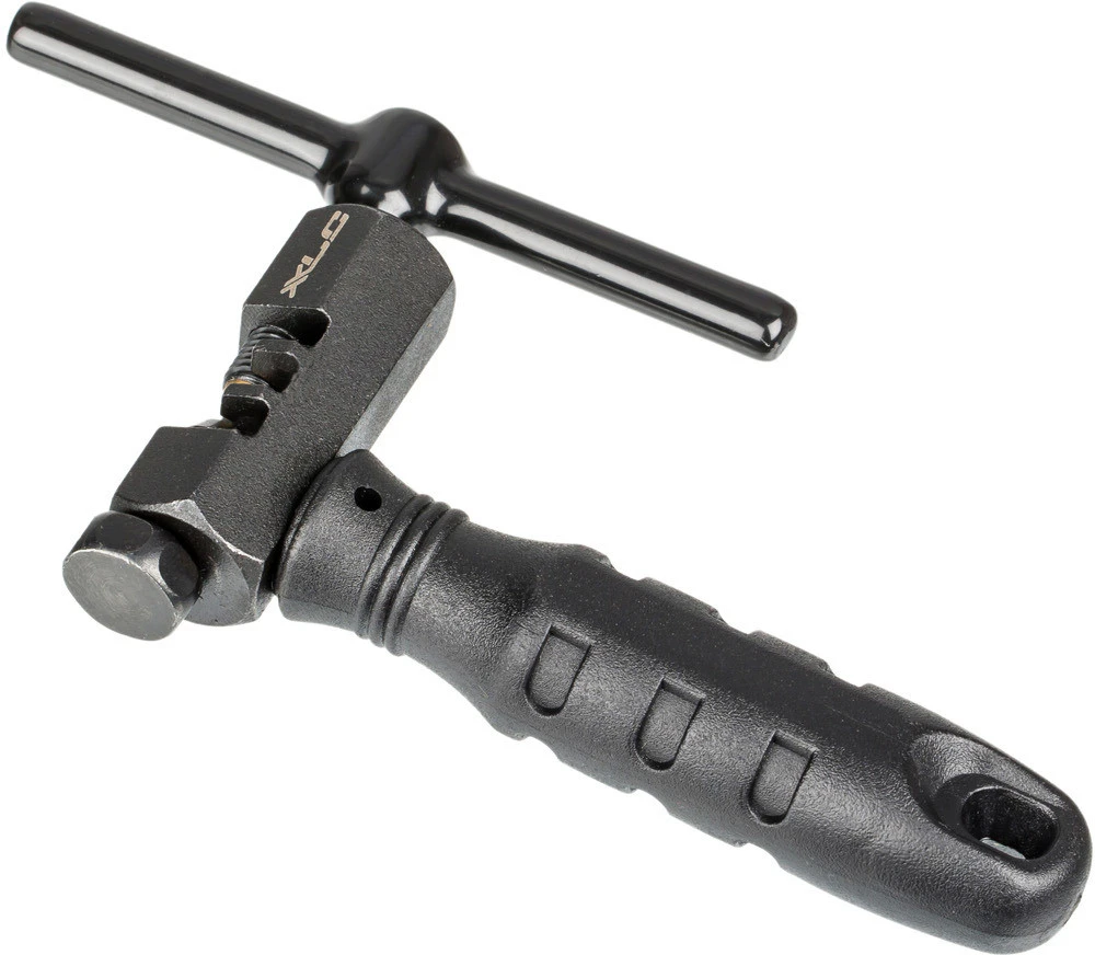 Handlicher XLC Kettennietentferner für Shimano HG- und UG-Ketten. Der gummierte Griff bietet einen guten Halt für eine sichere Handhabung.
